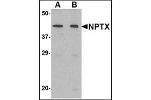 - NPTX2 antibody was raised against a 16 amino acid peptide near the center of the human NPTX2.
