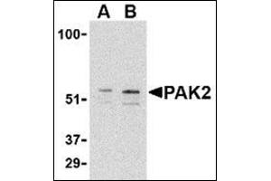 The p21-activated kinases (PAKs) are serine-threonine kinases that bind to the active forms of Cdc42 and Rac. They are divided into two groups, the first of which include PAK1, 2 and 3, and can be activated by Cdc42/Rac binding. Group 1 PAKs contain an autoinhibitory domain whose activity is regulated by Cdc42/Rac binding. The group 1 PAKs are known to be involved in cellular processes such as gene transcription, apoptosis, and cell morphology and motility. Much less is known about the second group, which includes PAK4, 5 and 6, and are not activated by Cdc42/Rac binding. Of the six PAK proteins, only PAK2 is ubiquitously expressed and cleaved by caspase-3. This cleavage removes the amino-terminal regulatory domain and generates a constitutively active kinase fragment. Recent experiments have shown that following cleavage, the active fragment is myristoylated and directed to the plasma membrane and membrane ruffles where it promotes cell death via increased signaling through the c-Jun N-terminal kinase pathway, but without compromising mitochondrial integrity.Synonyms: Gamma-PAK, PAK 2, PAK gamma, PAK-2, PAK65, Serine/threonine-protein kinase PAK 2, p21-activated kinase 2, p58
