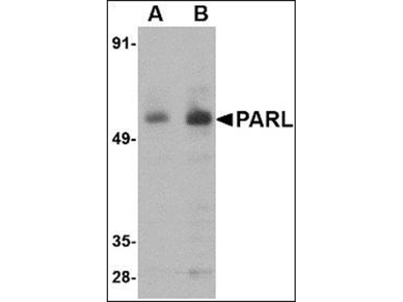 - PARL antibody was raised against a 15 amino acid peptide from near the amino terminus of human PARL.