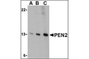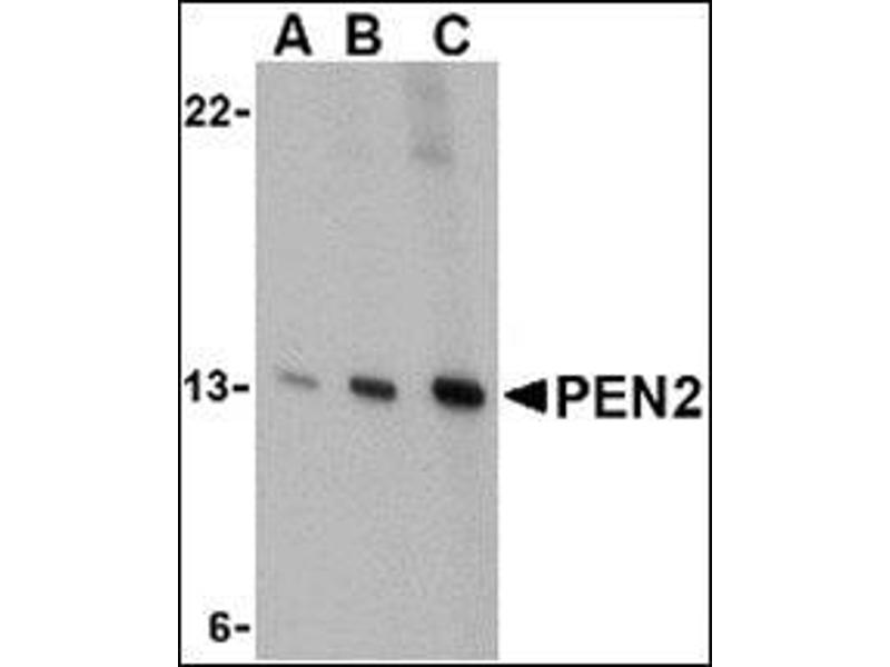 - PEN2 antibody was raised against a 13 amino acid peptide from near the carboxy terminus of human PEN2.