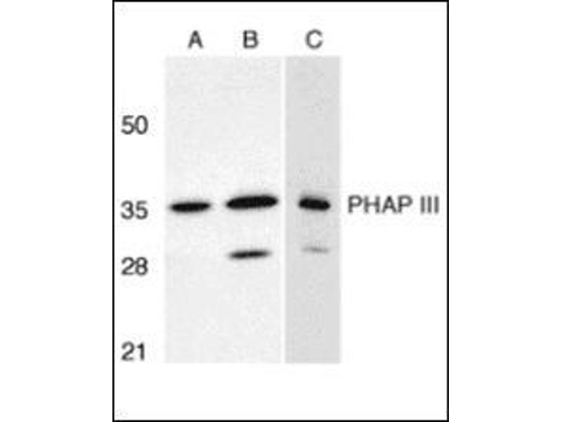 - This antibody detects ANP32E / PHAP III. It has no cross-reaction to PHAP I and PHAP I2a.