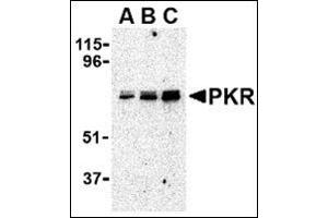 The interferon-inducible, double-stranded RNA (dsRNA)-dependent protein kinase PKR is a member of the eukaryotic initiation factor-2 alpha (eIF2-alpha) kinase family, possessing serine-threonine kinase activity and two dsRNA-binding motifs that acts as part of the innate immune system. Upon binding dsRNA, PKR undergoes a conformational change leading to its activation and its phosphorylation of the translation factor eIF2, resulting in a general shutdown of protein synthesis and induction of apoptosis through upregulation of caspase-8 and capsase-9 activity in order to prevent the production of more viruses. To evade the antiviral effects of PKR, viruses have evolved multiple mechanisms, such as the inhibition of PKR by the non-structural protein (NS1) of the influenza virus. More recently, PKR has been implicated in several neurodegenerative diseases including Alzheimer, Huntington, and amyotrophic lateral sclerosis.Synonyms: Eukaryotic translation initiation factor 2-alpha kinase 2, Interferon-induced double-stranded RNA-activated protein kinase, PRKR, Protein kinase RNA-activated, eIF-2A protein kinase 2, p68 kinase