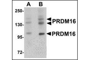 PRDM16 is a zinc finger transcription factor and contains an N-terminal PR domain. The reciprocal translocation t(1,3)(p36,q21) occurs in a subset of myelodysplastic syndrome (MDS) and acute myeloid leukemia (AML). This gene is located near the 1p36.3 breakpoint and has been shown to be specifically expressed in the t(1:3)(p36,q21)-positive MDS/AML. The translocation results in the overexpression of a truncated version of this protein that lacks the PR domain, which may play an important role in the pathogenesis of MDS and AML. Recent studies have shown that PRDM16 normally acts as a Smad3 binding protein that may be important for the development of orofacial structures through modulation of the TGF-beta signaling pathway. Other experiments have indicated that PRDM16 controls a bidirectional cell fate switch between skeletal myoblasts and brown fat cells.Synonyms: KIAA1675, MDS1/EVI1-like gene 1, MEL1, PFM13, PR domain zinc finger protein 16, PR domain-containing protein 16, Transcription factor MEL1