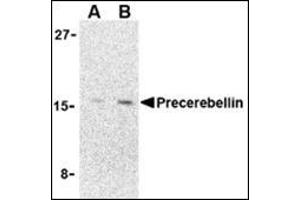 - Precerebellin antibody was raised against a 16 amino acid peptide from near the carboxy- terminus human precerebellin.