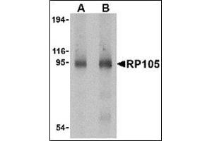 Toll-like receptors (TLRs) are evolutionarily conserved pattern-recognition molecules resembling the toll proteins that mediate antimicrobial responses in Drosophila. These proteins recognize different microbial products during infection and serve as an important link between the innate and adaptive immune responses.. The signaling of these TLRs is kept under tight control by the expression of endogenous inhibiting proteins. One such protein is RP105, a recently identified homolog to TLR4 that, with MD-1, interacts with and inhibits the TLR4/MD-2 signaling pathway. It has also been suggested that the RP105/MD-1 complex influences antibody production mediated by both TLR4/MD-2 and TLR2 receptor complexes. Despite its predicted molecular weight, RP105 often migrates at 95 - 105 kDa.Synonyms: LY64, Lymphocyte antigen 64, Radioprotective 105 kDa protein