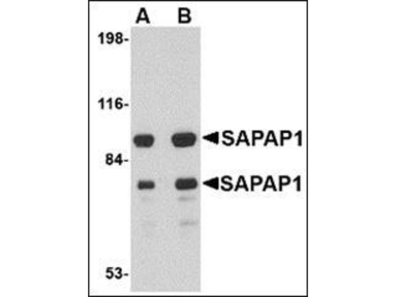 SAP90/PSD-95-associated protein 1 (SAPAP1, also known as DLGAP1 or GKAP) is a member of a protein family whose members specifically interact with PSD-95/SAP90, a membrane-associated guanylate kinase localized at postsynaptic density (PSD) in neuronal cells. Like the other SAPAP proteins, SAPAP1 is thought to be an adaptor protein that also interacts with different synaptic scaffolding proteins, cytoskeletal and signaling components, such as focal adhesion kinase (FAK) and proline-rich tyrosine kinase 2 (PYK2). SAPAP1 mRNA is targeted to cell bodies in a similar manner to SAPAP2 and -4, whereas SAPAP3 mRNA is detected mainly in cell bodies. SAPAP1 protein however, is targeted to the synapse and is not reliant on the synaptic localization of PSD-95 or the synaptic scaffolding molecule (S-SCAM). At least three isoforms of SAPAP1 are known to exist.Synonyms: DAP-1, DAP1, Disks large-associated protein 1, GKAP, Guanylate kinase-associated protein, PSD-95/SAP90-binding protein 1, SAP90/PSD-95-associated protein 1