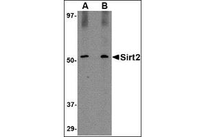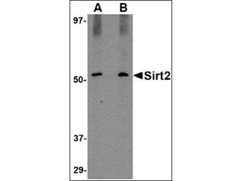 The founding member of the sirtuin protein family was the silent information regulator 2 protein (Sir2p) of Saccharomyces cervisiae, an NAD+-dependent histone deacetylase (HDAC) that regulates chromatin silencing. The SIR2 family of genes are highly conserved from prokaryotes to eukaryotes. Mammals have seven homologs of Sir2p, SIRT1-7, which are involved in diverse processes ranging from transcriptional regulation, cell cycle progression and DNA-damage repair to aging. SIRT2 is a predominantly cytoplasmic protein that colocalizes with microtubules and can deacetylate ?-tubulin and regulate progression through the cell cycle. Most Sirtuins are highly expressed in brain and testis, while Sirt2 expression is higher in fetal relative to adult brain. Recent studies on SIRT2 support the therapeutic utility of inhibitors for the treatment of neurodegenerative diseases such as Parkinson's disease.Synonyms: NAD-dependent deacetylase sirtuin-2, SIR2-like protein 2, SIR2L, SIR2L2, SIRT-2, sirtuin (silent mating type information regulation 2 homolog) 2 (S. cerevisiae), sirtuin 2, sirtuin type 2, sirtuin-2