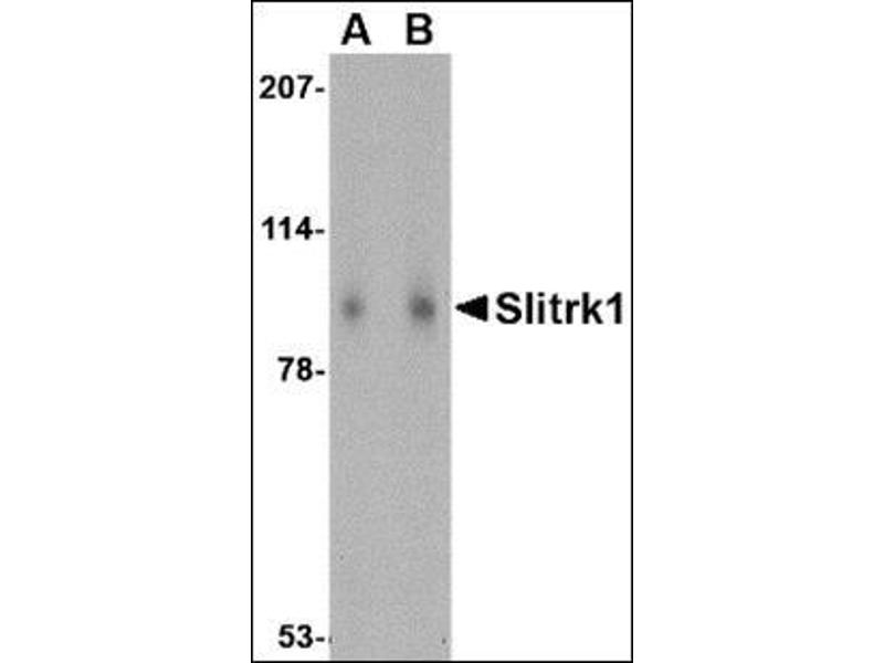 - Slitrk1 antibody was raised against a 18 amino acid peptide from near the center of human Slitrk1.