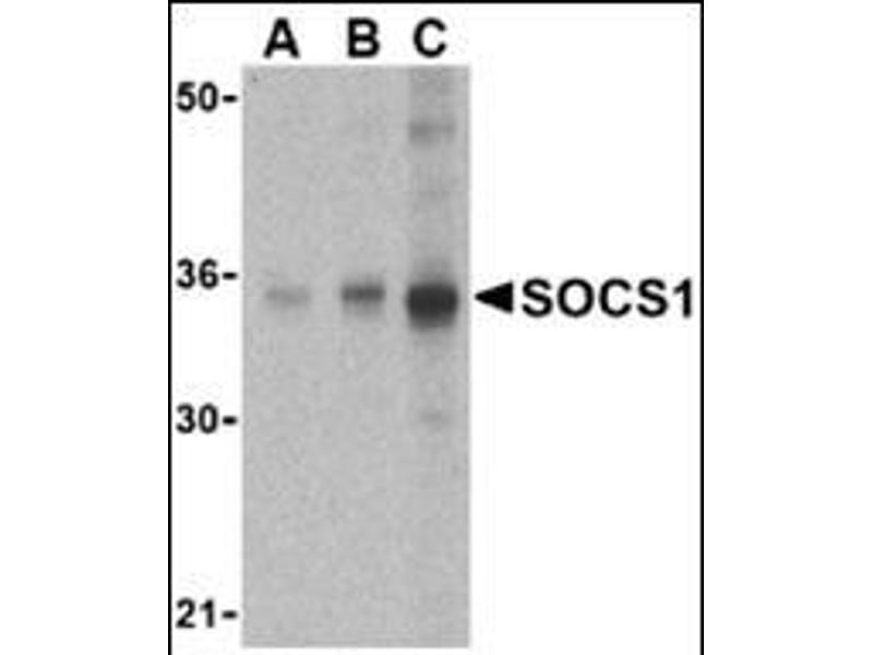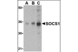 - SOCS1 antibody was raised against a 17 amino acid peptide from near the amino terminus of human SOCS1.