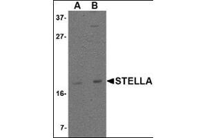 Stella was initially identified in primordial germ cells and pre-implantation embryos whose expression as a maternal factor is important in early embryonic development but is not required for germ cell specification in mice. In humans, Stella is thought to be a marker for pluripotency in embryonic stem (ES) cells as its expression is observed in primordial germ cells of both sexes and germ cell tumors but not in normal somatic tissues. However, in ES cell colonies, heterogeneous expression of Stella was seen in high throughput in situ hybridization assays, indicating that higher levels of complexity exist in otherwise thought to be undifferentiated ES cells. At least two distinct isoforms of Stella are known to exist.Synonyms: Developmental pluripotency-associated protein 3, STELLA, Stella-related protein