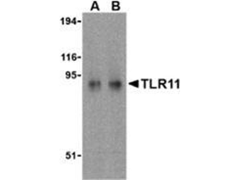 Toll-like receptors (TLRs) are signaling molecules that recognize different microbial products during infection and serve as an important link between the innate and adaptive immune responses (1-3). These proteins act through adaptor molecules such as MyD88 and TIRAP to activate various kinases and transcription factors (4,5). TLR11 is one of three mouse TLRs that lack a human ortholog (6). It is activated specifically by uropathogenic bacteria, and mice lacking TLR11 showed a much greater susceptability to uropathogenic infections, indicating a potentially important role for TLR11 in preventing infections in the urogenital system (7).Synonyms: Gm287, Toll-like receptor 11