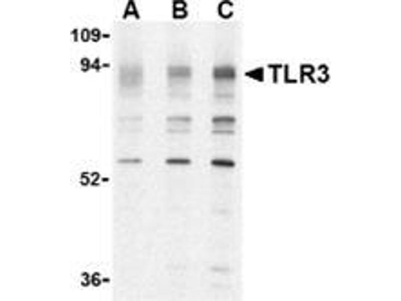 Toll-like receptors (TLRs) are evolutionarily conserved pattern-recognition molecules resembling the toll proteins that mediate antimicrobial responses in Drosophila. These proteins recognize different microbial products during infection and serve as an important link between the innate and adaptive immune responses (1,2). The TLRs act through adaptor molecules such as MyD88 and TIRAP to activate various kinases and transcription factors (3) so the organism can respond to potential infection. TLR3 is known to recognize viral double-stranded (ds) RNA, a molecular pattern associated with viral infection (4). Recently it has been shown to recognize viruses such as Influenza A (5) and West Nile Virus and can mediate entry of at least West Nile Virus (6).Synonyms: Toll-like receptor 3
