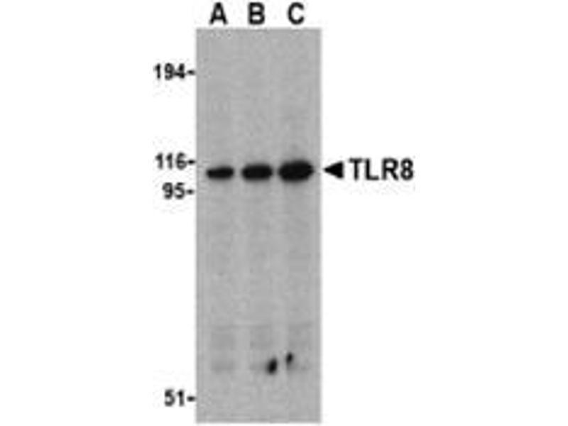 Der Kaninchen Polyklonal anti-TLR8 Antikörper (ABIN500964) detektiert spezifisch TLR8 in WB, IF und EIA.