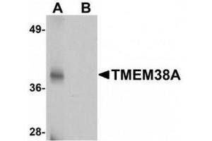 - TMEM38A antibody was raised against a 17 amino acid peptide from near the carboxy terminus of human TMEM38A.