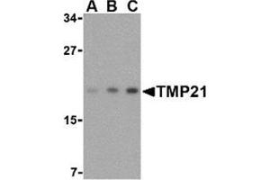 - TMP21 antibody was raised against a 18 amino acid peptide from near the center of human TMP21.