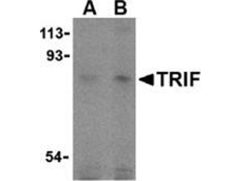 TRIF is a member of the Toll/interleukin-1 receptor (TIR) family, a group of proteins that include the Toll-like receptors (TLRs) (1-3). TLRs are signaling molecules that recognize different pathogen-associated molecular patterns (PAMPs) and serve as an important link between the innate and adaptive immune responses (4). TRIF, along with other molecules such as TIRP, TIRAP, and MyD88, serves as an adaptor protein to several of the TLR molecules. Following activation of TLR3 and TLR4, TRIF engages the kinase TBK1 and allows its subsequent activation of the interferon regulatory factor (IRF)-3 (5). TRIF is also involved in the activation of TNF receptor associated factor (TRAF)-6, and ultimately the activation of NF-kappaB (6).Synonyms: PRVTIRB, Proline-rich vinculin and TIR domain-containing protein B, Putative NF-kappa-B-activating protein 502H, TICAM-1, TIR domain-containing adapter molecule 1, Toll-interleukin 1 receptor domain-containing adapter protein inducing interferon-beta