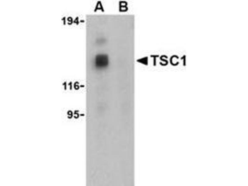 Tuberous sclerosis complex (TSC) is an autosomal dominant tumor syndrome caused by mutations in either of the TSC1 or TSC2 tumor suppressor genes. The products of these genes form a protein complex that indirectly decreases the signaling of the mammalian Target of Rapamycin (TOR), an evolutionarily conserved serine/threonine kinase that regulates cell growth and cell cycle through its ability to integrate signals from nutrient levels and growth factors (reviewed in 1,2). TOR activity is stimulated by Rheb, a member of the Ras superfamily of G-proteins, when the GTP/GDP ratio bound to Rheb is high (3). Immunoprecipitated TSC1/TSC2 has been shown to stimulate Rheb GTPase activity in vitro (4), suggesting that the TSC1/TSC2 decreases the ability of Rheb to stimulate TOR activity. This is supported by experiments showing overexpression of TSC1 and TSC2 results in a significant decrease in the GTP/GDP ratio bound to Rheb and the inhibition of cell growth (4,5). A shorter 40 kDa isoform of TSC1 has been shown to exist but its function is unknown.Synonyms: KIAA0243, TSC, Tuberous sclerosis 1 protein
