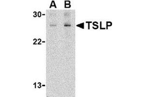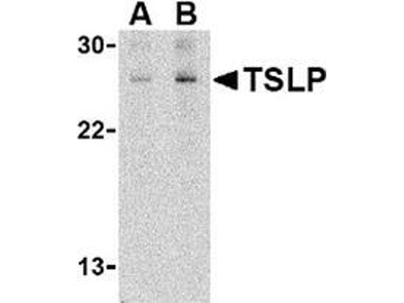 Thymic stromal lymphopoietin (TSLP) has recently been identified as an important factor capable of driving dendritic cell maturation and activation. TSLP is a four-helix-bundle cytokine that is expressed mainly by barrier epithelial cells and is a potent activator of several cell types such as myeloid dendritic cells. TSLP is involved in the positive selection of regulatory T cells, maintenance of peripheral CD4+ T cell homeostasis and the induction of CD4+ T cell-mediated allergic reaction. TSLP is also capable of supporting the growth of fetal liver and adult B cell progenitors and their differentiation to the IgM-positive stage of B cell development. Amino acid sequence analysis has shown poor homology between human and mouse TSLP although they exhibit similar biological functions and are expressed in similar tissues. Despite its predicted molecular weight, TSLP often migrates at a higher molecular weight in SDS-PAGE. At least two differentially spliced isoforms of TSLP are known to exist.Synonyms: Thymic stroma-derived lymphopoietin, Thymic stromal lymphopoietin