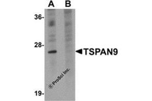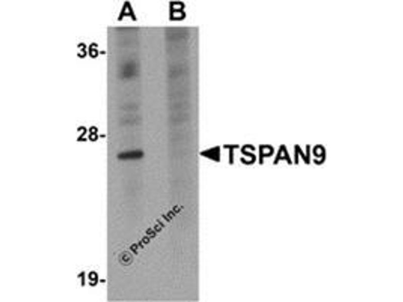 The tetraspan family protein members are characterized by four predicted transmembrane domains and are thought to be involved in physiological processes such as tissue differentiation, immunological responses, and sperm-egg fusion. TSPAN9 has recently been identified as a platelet tetraspanin and a component of tetraspanin microdomains that include the collagen receptor GPVI (glycoprotein VI) and integrin alpha6beta1 but not the von Willebrand receptor GPIbalpha or the integrins alphaIIbbeta3 or alpha2beta1, suggesting that TSPAN9 may act to regulate platelet function in concert with other tetraspanins and their associated proteins.Synonyms: NET5, Tetraspan NET-5, Tspan-9