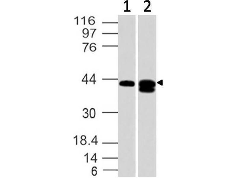 S1PR1 (Sphingosine-1-phosphate receptor 1) is a G-protein coupled receptor, which binds the bioactive S1P (sphingolipid, sphingosine-1-phosphate) as a high affinity ligand. S1P is present at high levels in blood and lymph, and plays a critical role in the homeostasis of the vascular and immune systems. S1PR1 was originally identified as an abundant transcript in endothelial cells and plays a key role in regulating endothelial cell cytoskeletal structure, migration, capillary-like network formation and vascular maturation. In the immune system, S1PR1 signaling is important in the regulation of lymphocyte migration and trafficking. Inhibition of S1PR1 results in lymphocyte sequestration within lymphoid organs. S1PR1 may also regulate tumor cell functions in some types of B cell lymphoma. Inhibition of S1PR1 expression down regulates signal transducer and activator of transcription 3 activity, leading to inhibition of lymphoma tumor cell growth. S1PR1 signaling in T cells drives Treg accumulation in tumors, limits CD8+ T cell recruitment and activation, and promotes tumor growth.