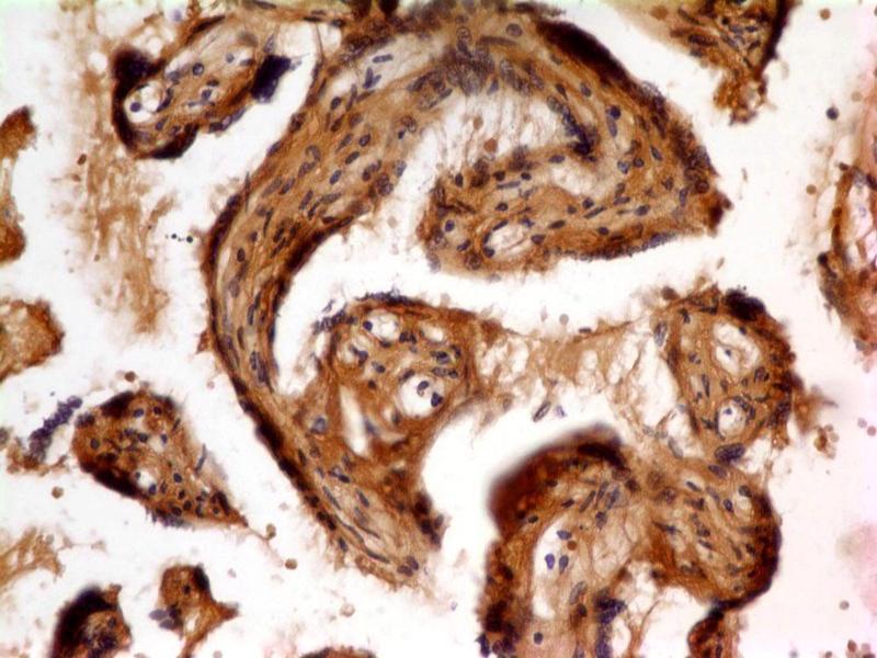 FLT-1 (fms-related tyrosine kinase 1) is an endogenous inhibitor of vascular endothelial growth factor, which is involved in cardiovascular remodeling and atherosclerosis development. It potently inhibits angiogenesis by binding extracellularly to VEGF (vascular endothelial growth factor). FLT-1 is expressed on tumor cells and is implicated in tumor growth and progression. It is overexpressed in primary tumors and nodal metastasis. FLT-1 regulates monocyte migration, recruits endothelial cell progenitors, increases the adhesive properties of natural killer cells and induces growth factors. It is observed in many diseases with endothelial dysfunction, including pre-eclampsia and diabetic retinopathy, but whether it contributes to endothelial injury in IgAN requires further exploration.