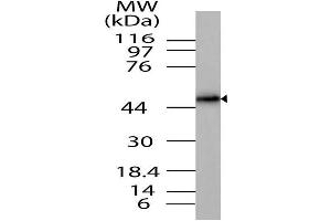 Runt-related transcription factor 2 (Runx2) is also known as core-binding factor subunit alpha-1 (CBF-alpha-1). RunX2 is one of the three mammalian transcription factors sharing the highly conserved DNA-binding Runt domain that represents a key class of lineage-specific gene regulators and is associated with different micro-environments during the cell cycle. RUNX2 has a primary role in the differentiation of osteoblasts and hypertrophy of cartilage at the growth plate, cell migration and vascular invasion of bone and is also expressed in vascular endothelial cells and breast cancer cells. It is a heterodimer of an alpha and a beta subunit. RUNX2 plays a role in the disease metaphyseal dysplasia with maxillary hypoplasia with or without brachydactyly, and cleidocranial dysplasia. By alternative splicing, several isoforms exist.