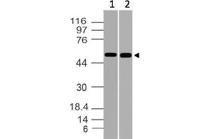 - A partial length recombinant RuvB-like 1 protein (amino acids 220-455) was used as the immunogen for this antibody.