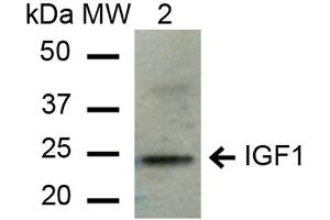 A 1:1000 dilution of ABIN5066641 was sufficient for detection of IGF-1 in 15 μg of mouse liver cell lysates by ECL immunoblot analysis using goat anti-rabbit IgG:HRP as the secondary antibody.