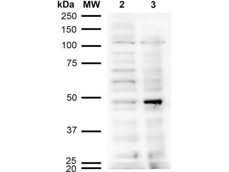 A 1:1000 dilution of ABIN5067183 was sufficient for detection of Acrolein in 2 μg of Acrolein conjugated to BSA by ECL immunoblot analysis using Goat Anti-Mouse IgG:HRP as the secondary Antibody.
