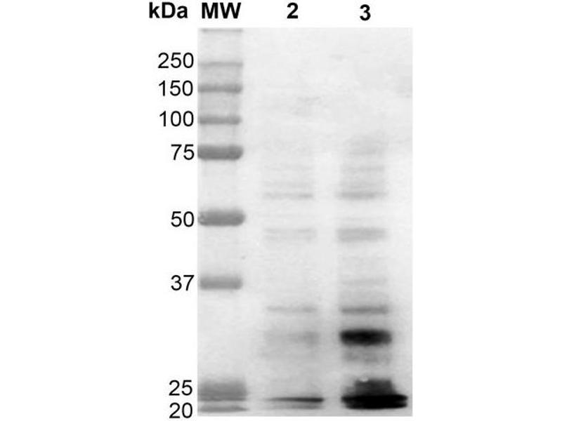 A 1:1000 dilution of ABIN5067481 was sufficient for detection of dityrosine in 1 μg of Dityrosine conjugated to BSA by ECL immunoblot analysis using Goat Anti-Mouse IgG:HRP as the secondary Antibody.