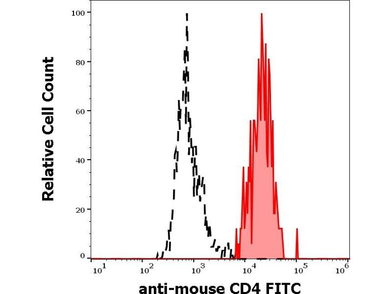 - The rat monoclonal antibody GK1.5 reacts with an extracellular epitope of mouse CD4 transmembrane glycoprotein (55 kDa).