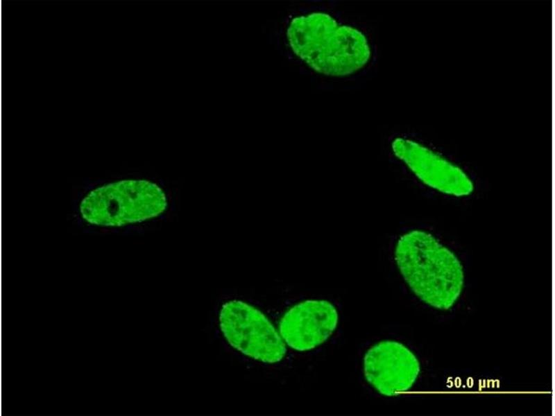 Der Maus Monoklonal anti-RUNX2 Antikörper (Klon 2B9) (ABIN514041) detektiert spezifisch RUNX2 in WB, ELISA und IF.