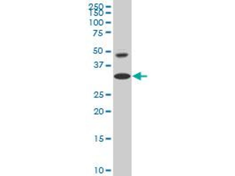 HOXD8 (NP_062458, 126 a.a. ~ 190 a.a) partial recombinant protein with GST tag. MW of the GST tag alone is 26 KDa.
