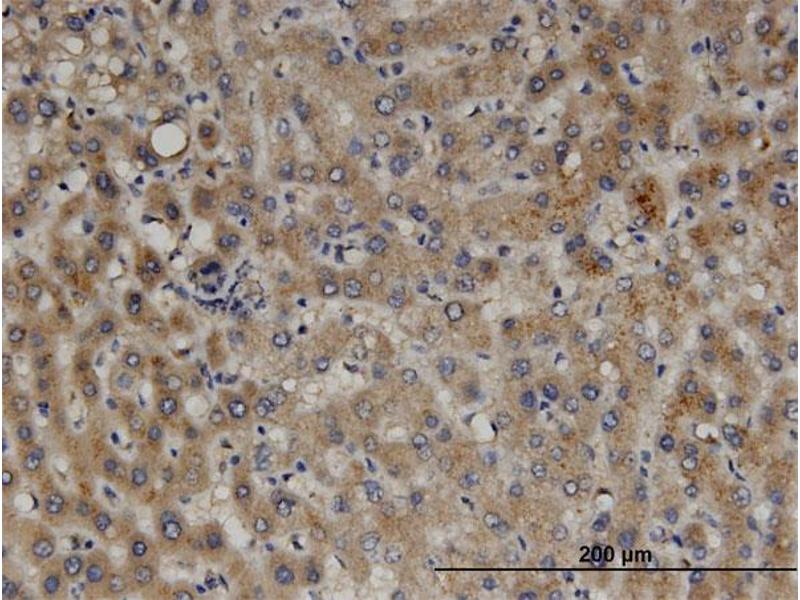 Mouse monoclonal antibody raised against a partial recombinant PEX11B.