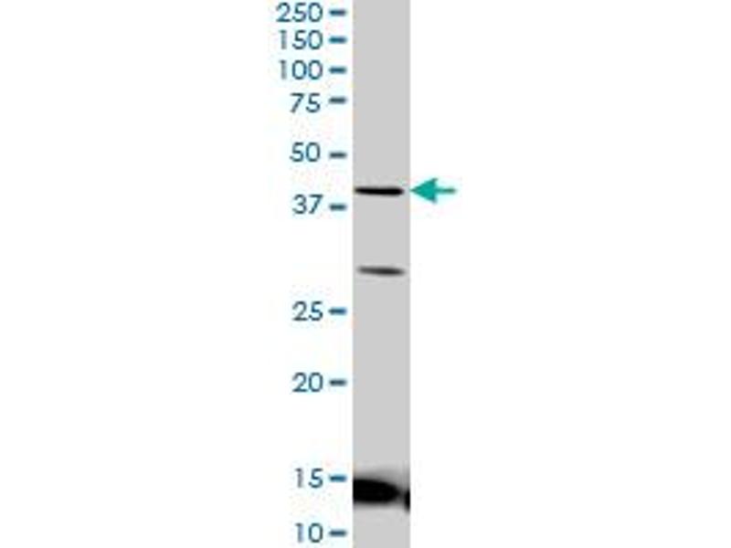 LEF1 (NP_057353, 14 a.a. ~ 123 a.a) partial recombinant protein with GST tag. MW of the GST tag alone is 26 KDa.