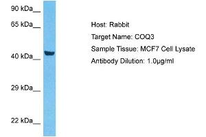 Der Kaninchen-Polyklonal Anti-COQ3-Antikörper wurde für WB validiert. Er ist geeignet zum Nachweis von COQ3 in Proben aus Human, Maus, Ratte, Rind (Kuh), Hund, Pferd, Meerschweinchen und Zebrafisch (Danio rerio).