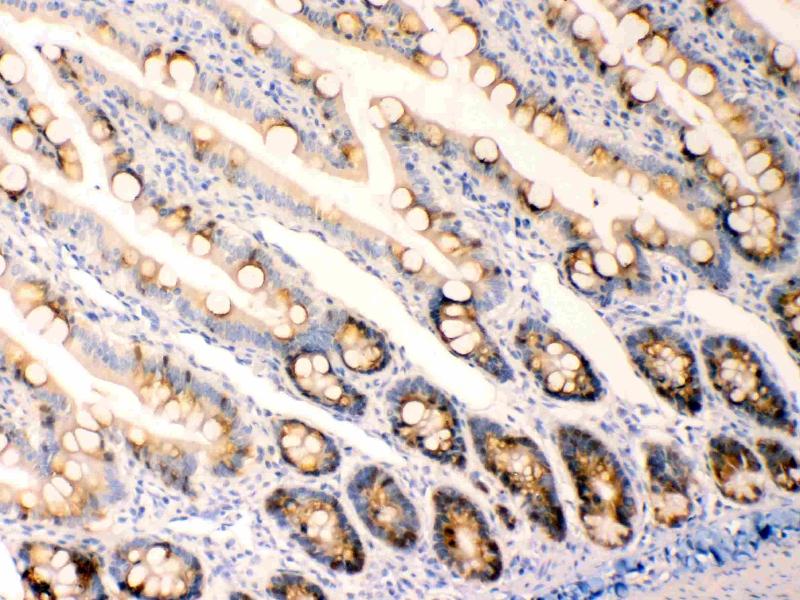 Tissue Specificity: Expressed strongly in trachea, lung, stomach, colon, prostate and small intestine. Expressed weakly in pituitary gland, salivary gland, mammary gland, bladder, appendix, ovary, fetal lung, uterus, pancreas, kidney, fetal kidney, testis, placenta, thyroid gland and in estrogen receptor (ER)-positive breast cancer cell lines. .