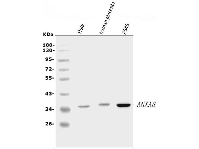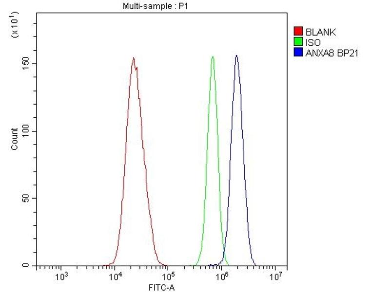 Background: ANXA8 is also known as ANNEXIN VIII. This gene encodes a member of the annexin family of evolutionarily conserved Ca2+ and phospholipid binding proteins. The encoded protein may function as an anticoagulant that inly inhibits the thromboplastin-specific complex. Overexpression of this gene has been associated with acute myelocytic leukemia. A highly similar duplicated copy of this gene is found in close proximity on the long arm of chromosome 10.