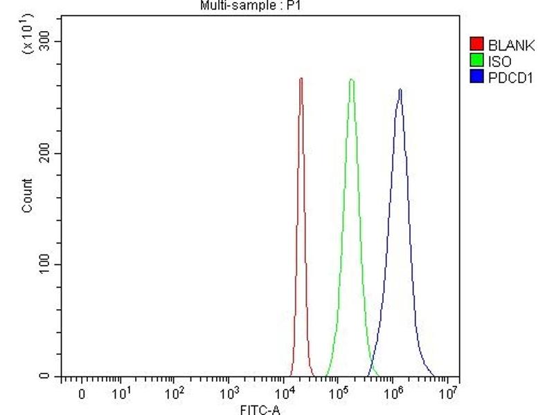 - Anti-PD-1 PDCD1 Antibody (ABIN5518784). Tested in Flow Cytometry, IF, IHC, WB applications. This antibody reacts with Mouse, Rat. This is a premium antibody that guarantees superior quality, high affinity, and strong signals with minimal background in Western blot applications.