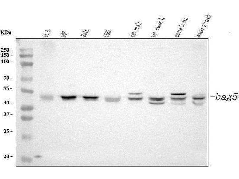 - Anti-Bag5 Antibody (ABIN5518812). Tested in Flow Cytometry, IF, ICC, WB applications. This antibody reacts with Human, Mouse, Rat. This is a premium antibody that guarantees superior quality, high affinity, and strong signals with minimal background in Western blot applications.