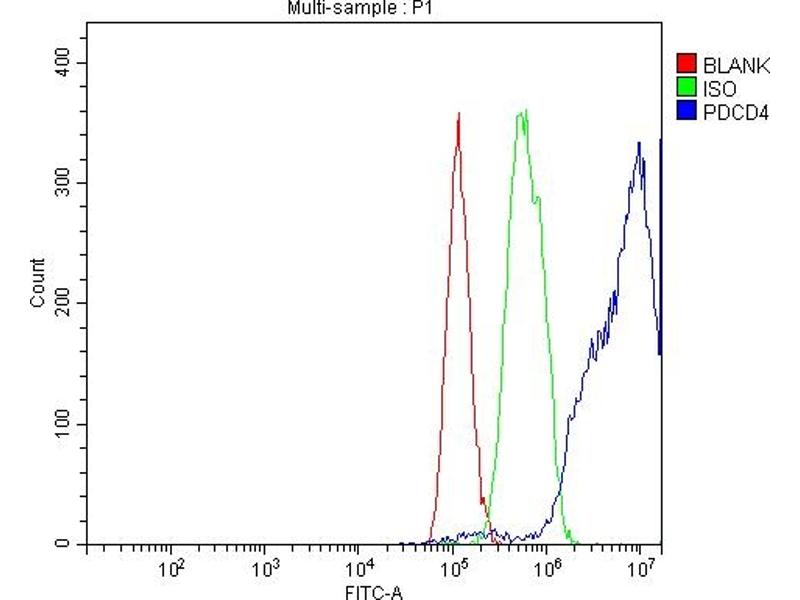 - Anti-PDCD4 Antibody (ABIN5518943). Tested in Flow Cytometry, IHC, WB applications. This antibody reacts with Human. This is a premium antibody that guarantees superior quality, high affinity, and strong signals with minimal background in Western blot applications.