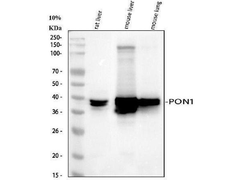 - Anti-PON1 Antibody (ABIN5519053). Tested in IHC, WB applications. This antibody reacts with Mouse, Rat. This is a premium antibody that guarantees superior quality, high affinity, and strong signals with minimal background in Western blot applications.