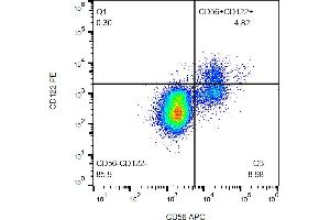 The mouse monoclonal antibody TU27 recognizes an extracellular epitope of CD122 (IL-2R beta), a 70-75 kDa type I transmembrane glycoprotein constitutively expressed by NK cells and a T cell subset, and upregulated upon activation.