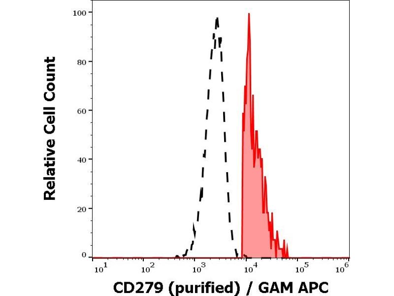 The mouse monoclonal antibody EH12.2H7 recognizes an extracellular epitope of CD279 / PD-1 (programmed cell death 1), a 55 kDa type I transmembrane protein expressed above all during T cell development, on activated T cells, activated B cells, and activated monocytes.