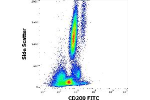The mouse monoclonal antibody OX-104 recognizes an extracellular epitope of CD200, a type-1 glycoprotein of the immunoglobulin superfamily, which is expressed in neurons, B and T cell subsets, keratinocytes, follicular dendritic cells, and ovarian cells.