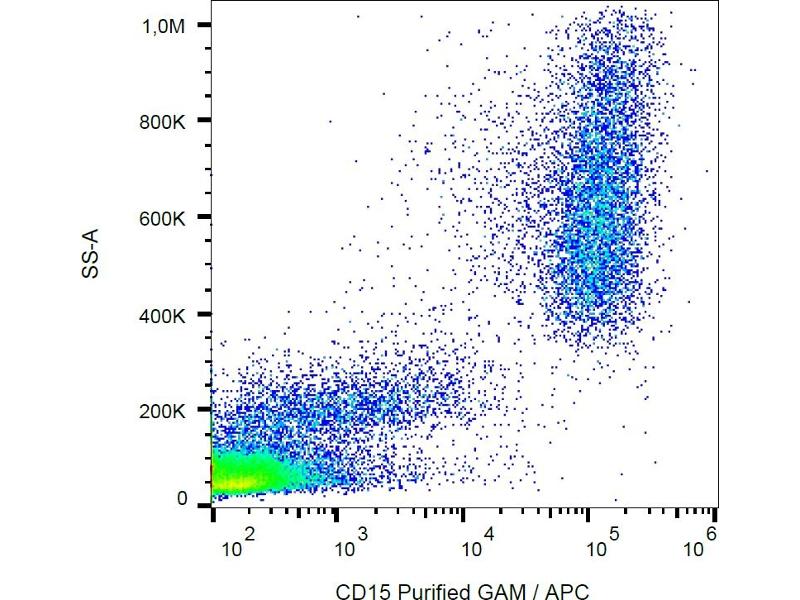 CD15 (Lewis x), also known as stage specific embryonic antigen-1 (SSEA-1) is a trisacharide determinant (3-fucosyl-N-acetyllactosamine) expressed on several glycolipids, glycoproteins and proteoglycans of various cell types, e.g. granulocytes, mast cells, monocytes, macrophages, cells of gastric mucosa, nervous system or various tumour cells. There are several structural relatives of Lewis x, e.g. sialyl-Lewis x or sulphated Lewis x. Cells with high surface expression of Le(x) antigen exhibit strong self-aggregation, based on calcium-dependent Le(x)-Le(x) interaction. This process is involved for example in embryo compaction or in autoaggregation of teratocarcinoma cells. Sialyl-Le(x) and its isomer sialyl-Le(a) are ligands of selectins. CD15 expression has been extensively used to confirm diagnosis of Hodgkin´s disease.,Lewis x Blood Group antigen, Le(x), SSEA-1, 3-fucosyl-N-acetyllactosamine