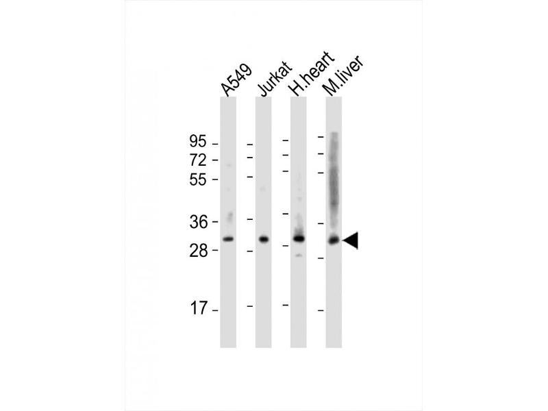 This ATF5 antibody is generated from rabbits immunized with a KLH conjugated synthetic peptide between 188-216 amino acids from the C-terminal region of human ATF5.