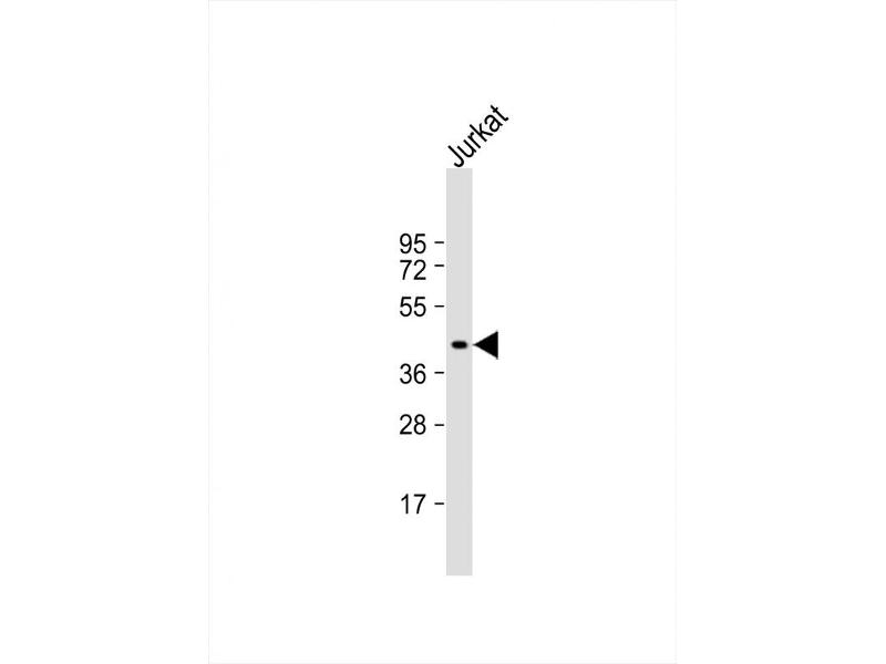 This PIM1 antibody is generated from rabbits immunized with a KLH conjugated synthetic peptide between 374-404 amino acids from the C-terminal region of human PIM1.