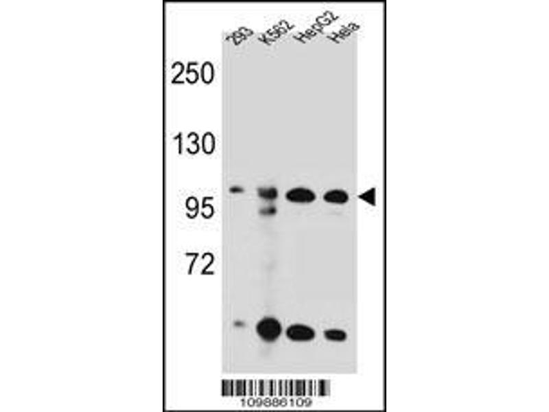 This KSR2 antibody is generated from rabbits immunized with a KLH conjugated synthetic peptide between 603-638 amino acids from the C-terminal region of human KSR2.