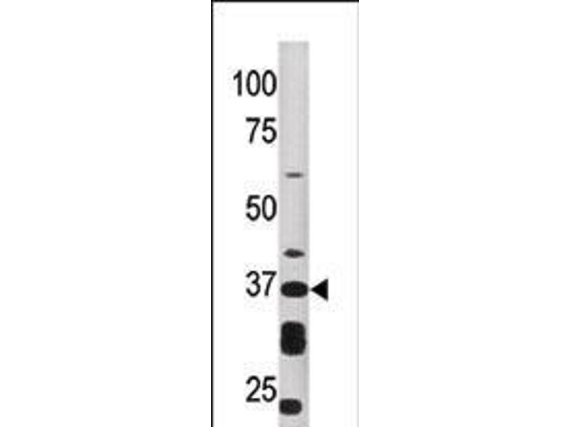 Der Kaninchen Polyklonal anti-ART1 Antikörper (ABIN5533675) detektiert spezifisch ART1 in WB.